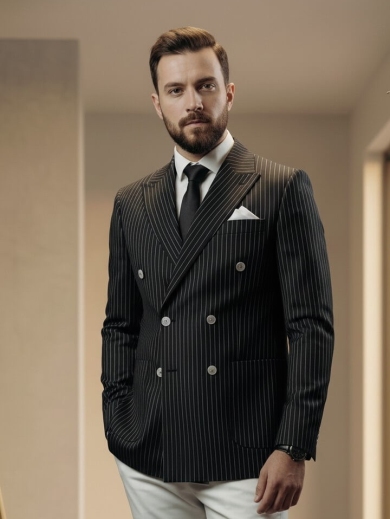 Двубортный чёрный смокинг